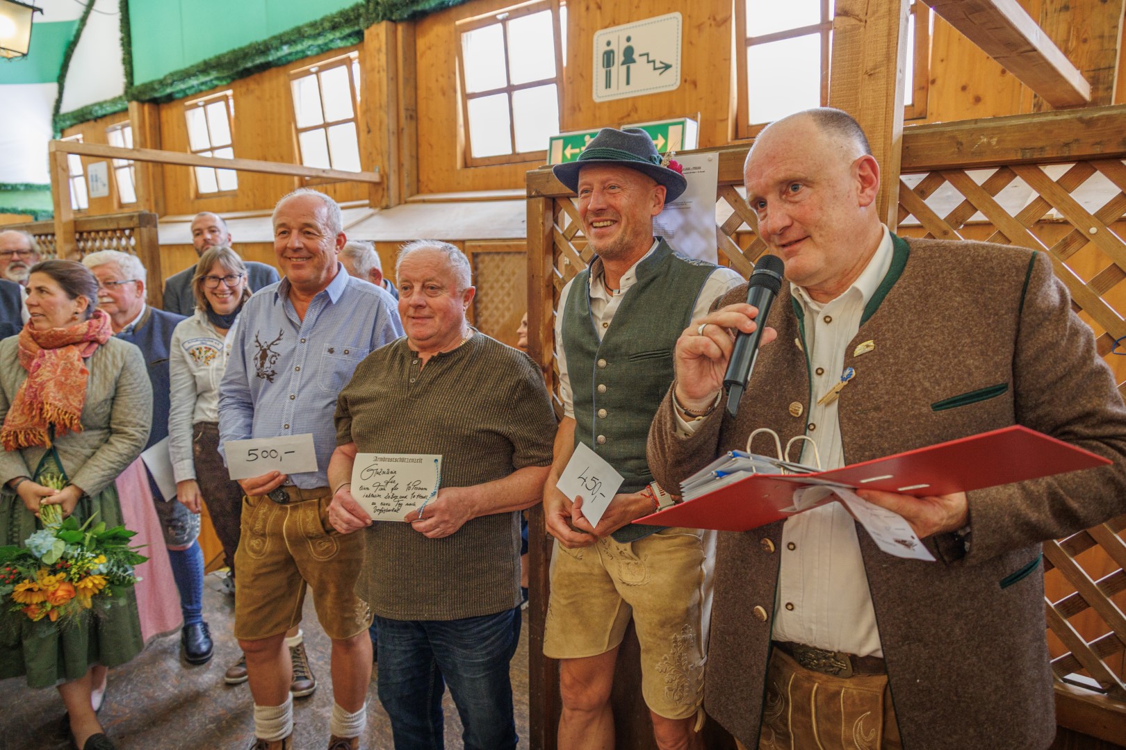 Bereits vor der Siegerehrung stand der eigentliche Sieger des Turniers fest: Aus dem Reinerlös des Turniers konnte die Schafkopfschule diesmal einen Spendenscheck über sage und schreibe 5000.- Euro an die Bergwacht Rottach-Egern übergeben! Wie immer war diese Spende nur möglich aufgrund der zahlreichen Teilnehmer und natürlich wegen der beiden schafkopfverrückten Wirtsleute, Katharina und Peter Inselkammer! Herzlichen Dank an dieser Stelle für die großartige Unterstützung und die außergewöhnliche Förderung des Schafkopfspiels durch die fünf Schafkopftage und das mittlerweile traditionelle Wiesnturnier im Armbrustschützenzelt!